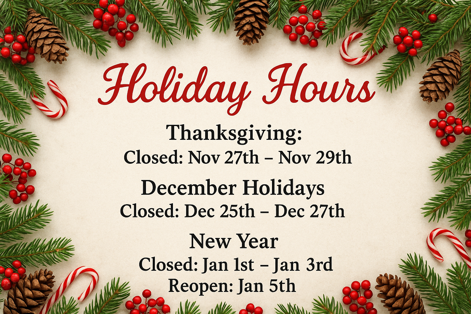 Sun & Holidays - By Appointment